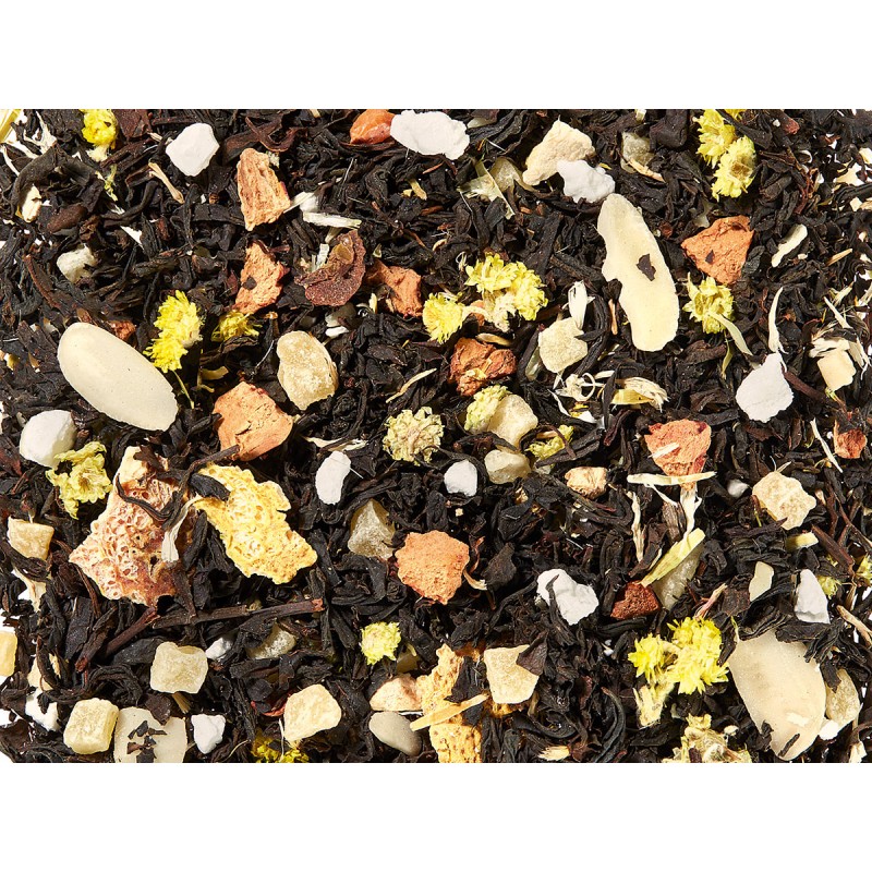 Ingredients: black tea (51 %), pineapple cubes (pineapple, sugar), apple pieces, flavouring, sliced almonds, lemon peel, freeze-dried lemon peel, almond pieces, freeze-dried lemon granules (maltodextrin, fruit (lemon juice), natural lemon oil, gelling agent: sodium alginate), freeze-dried yoghurt granules (skimmed milk yoghurt, sugar, maltodextrin, modified starch, acidifying agent: citric acid), mountain everlasting, white cornflower blossoms.
